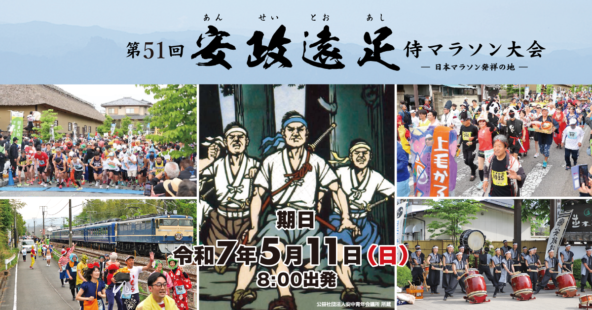 令和7年5月11日(日)に開催される第51回安政遠足侍マラソン大会【公式】サイトです。当サイトではコースマップ、エントリー情報などご覧いただけます。