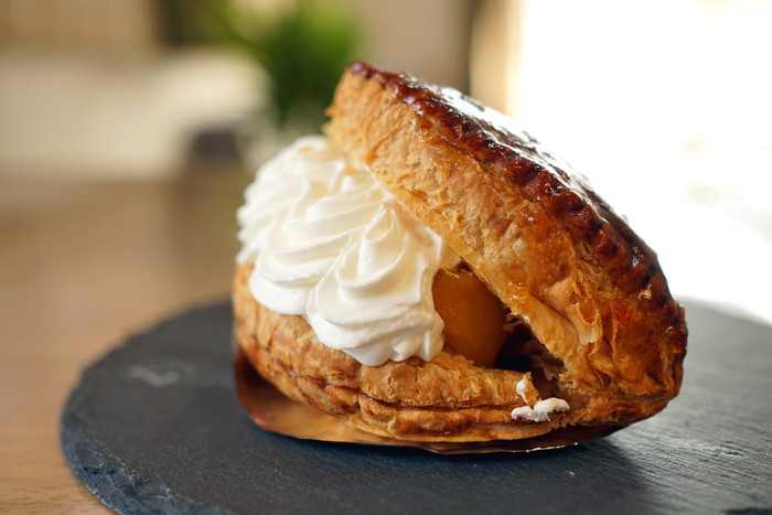 生アップルパイフランス産発酵バター使用のサックサクのパイに、キャラメリゼしたりんごを入れ生クリームをトッピング。ちなみに生クリームはオーダー後に並々とトッピングして頂けます(´ω`*)自宅から近いこともありことある毎に出掛けています、藤岡市...