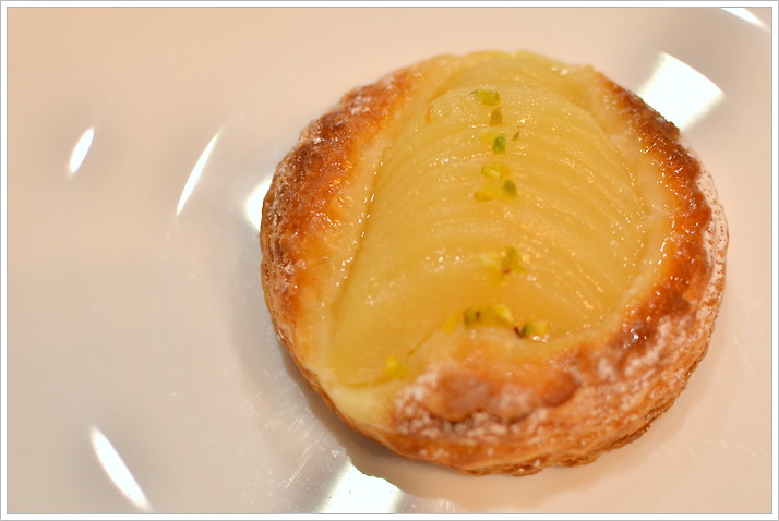 フルーツデニッシュ 洋なし 薄くスライスされた瑞々しい洋梨がずらりと。 それを包み込むデニッシュは風味良く、 サックリと歯切れもまた宜しく・・・。 そのパンのお名前はフルーツデニッシュ 洋なし。 富岡市は街のパン屋さん スリジェさんの、 ...
